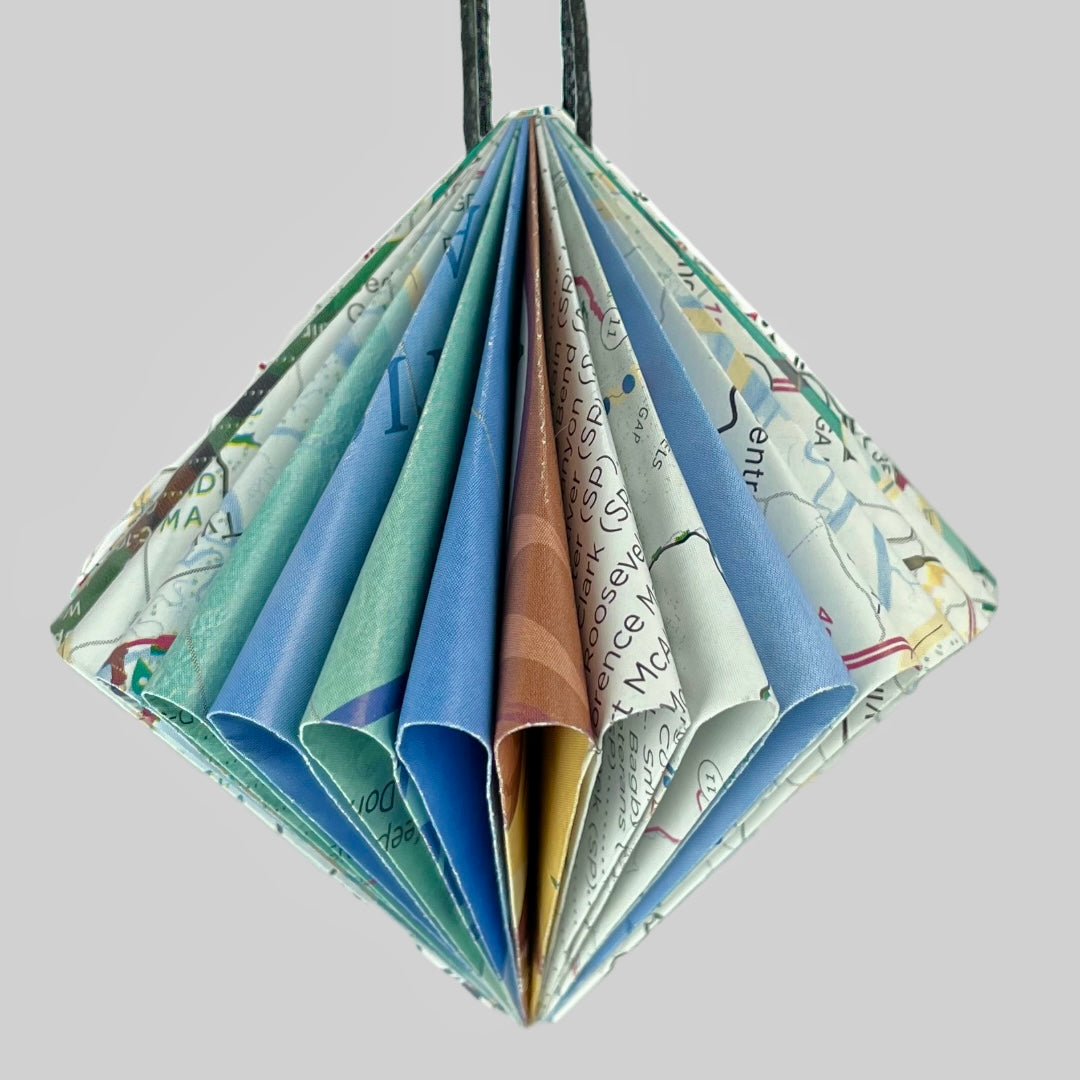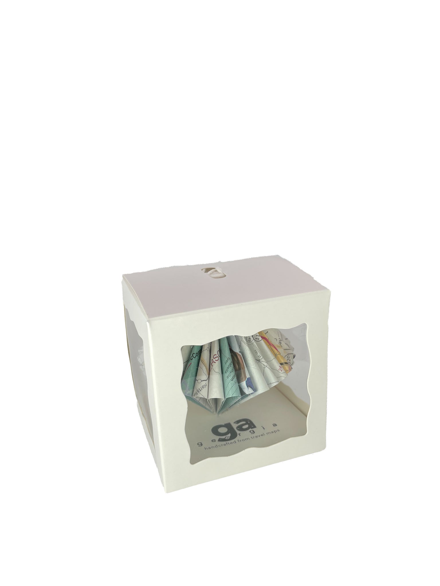 Celebrate the beauty of Georgia with these colorful travel map ornaments. Each ornament features 32 carefully folded pages, held securely with just two staples—no glue involved. The folded design ensures the shape stays intact, offering a charming and durable keepsake that supports your love for travel and exploration.