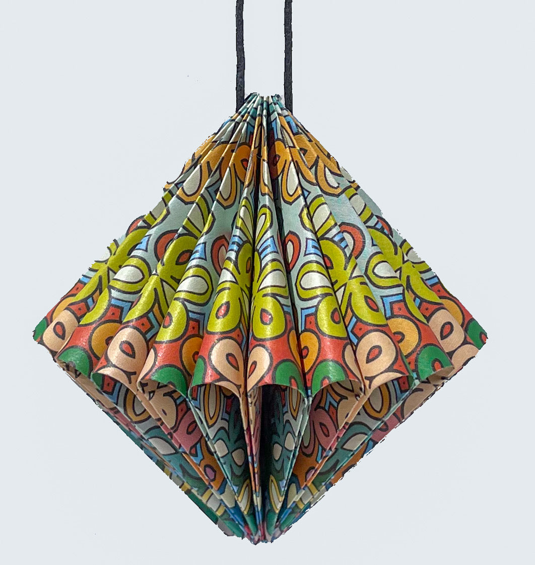 A little bite of mid century pop art feel. Made of 6 pieces of standard origami paper.