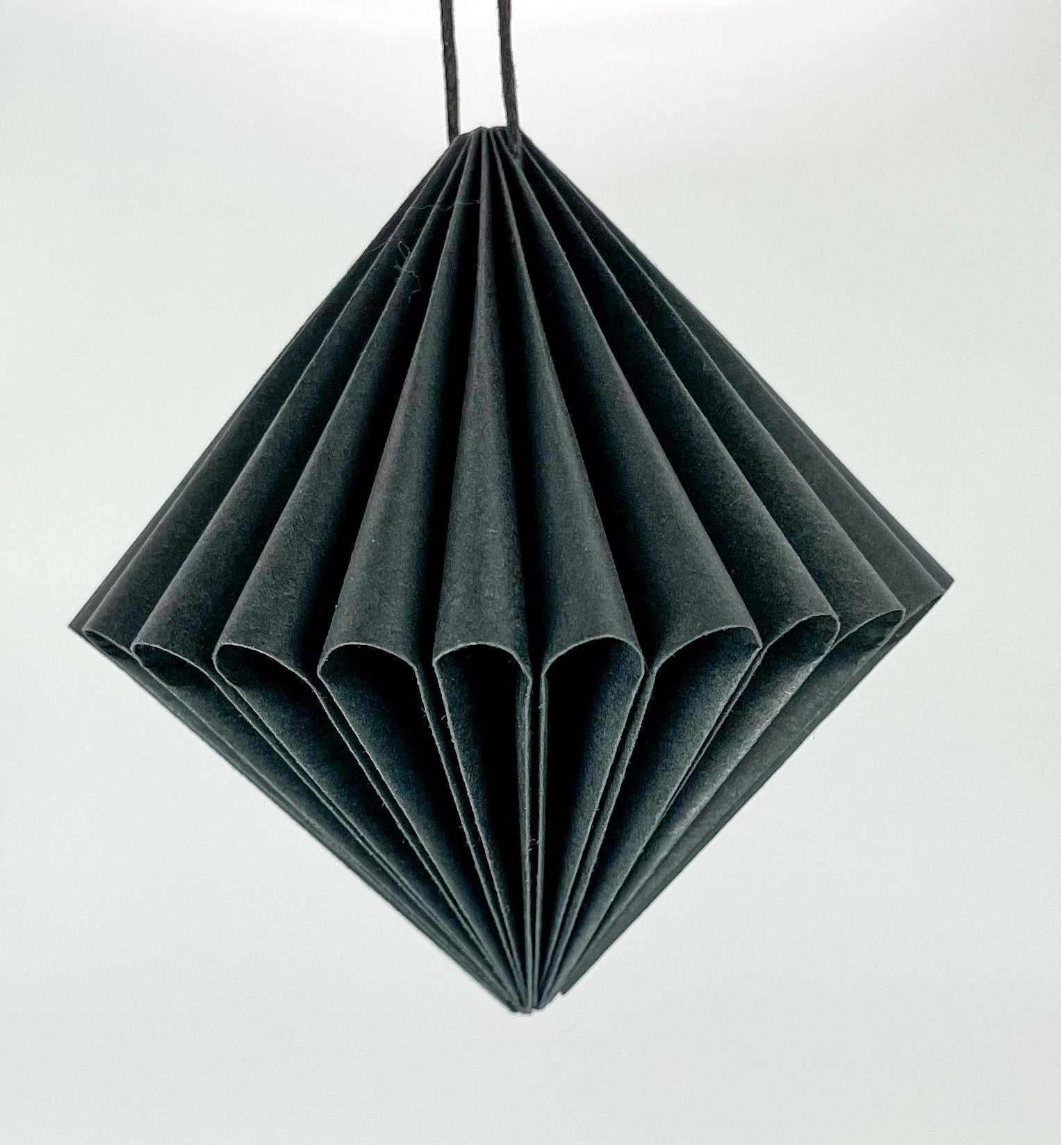 Embrace the bold allure of night with this striking ornament made from solid black origami paper. Featuring 24 meticulously folded pages, it commands attention and adds a fearless, dramatic edge to your decor. Perfect for those who dare to stand out.